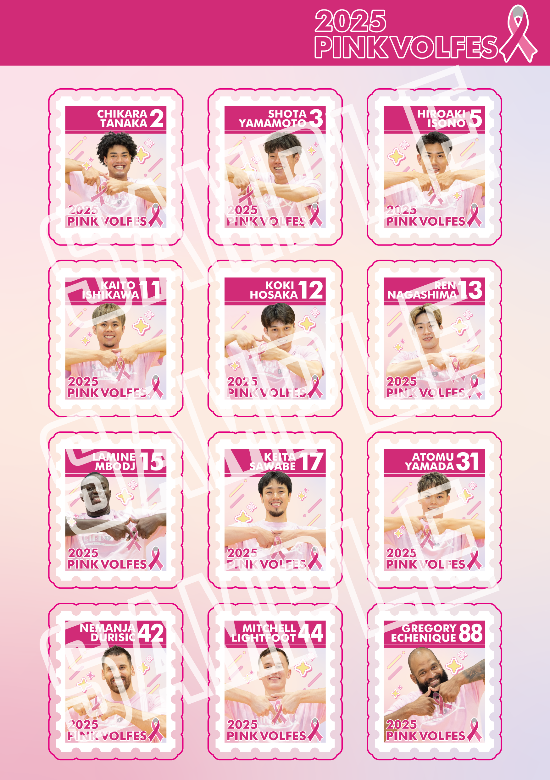 ここでしか手に入らない選手の切手風ステッカーをプレゼント!好きなところに貼って、ピンクリボン活動を熊本ヴォルターズの選手と一緒に応援しよう。